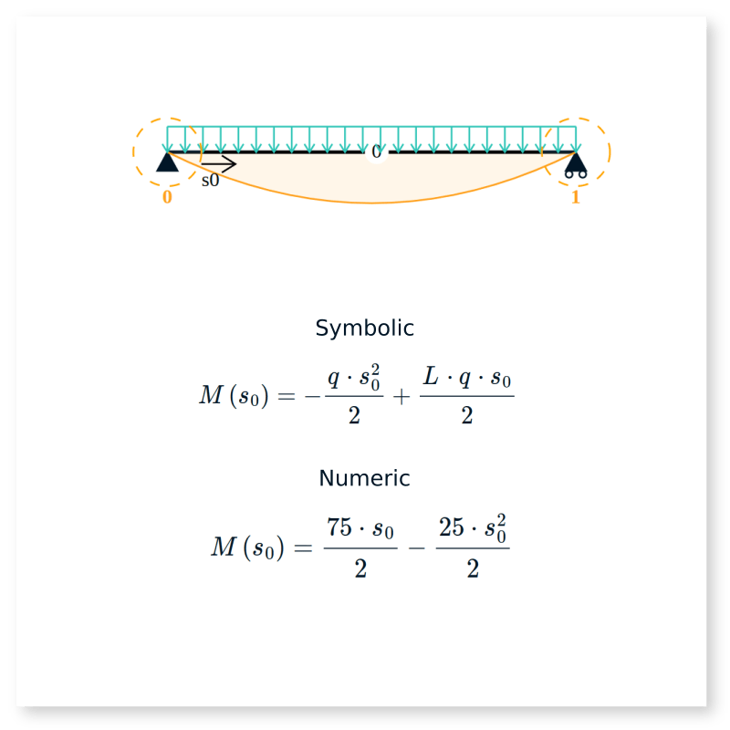 Beamsolver has an integrated Computer Algebra System to handle symbolic computations.