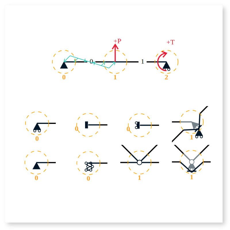 Highly customizable loads, supports and hinges