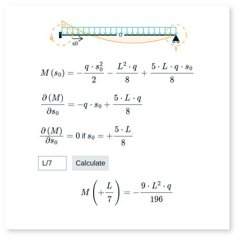 Beamsolver is not limited to numerical quantities. What if your load is simply q? what if your beam's length is simply L?